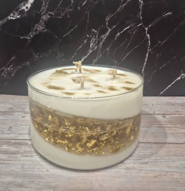 Luxus-Duftkerze mit Gold - Silber oder Rosé flakes – Handgegossen mit Liebe und Eleganz
